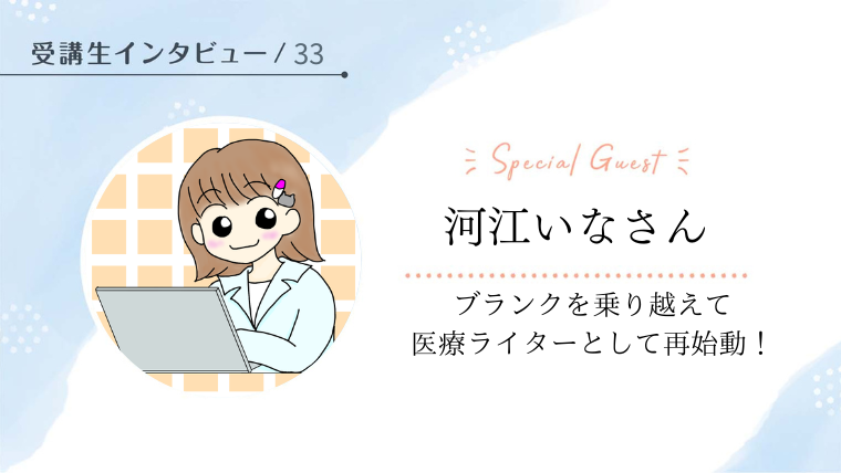 今回お話を伺ったのは、ブランクを経て医療ライターとして再び働きはじめた薬剤師の河江いなさん。第18回「Medi+医療ライターのはじめかた講座」を受講し、医療に特化したライティングスキルを得たことで、家族との時間を大事にしながら自分のペースで働いています。