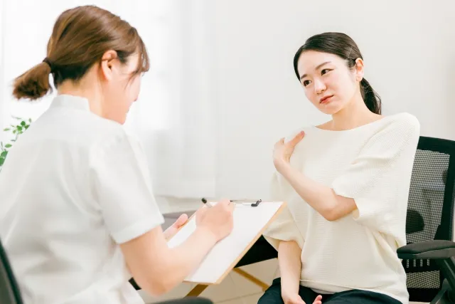 たとえば頭痛や肩こりに対しては、「どのような痛み?」よりも「ズキズキ?それとも雨の日に重だるくなる感じ?」などと具体的に質問します。