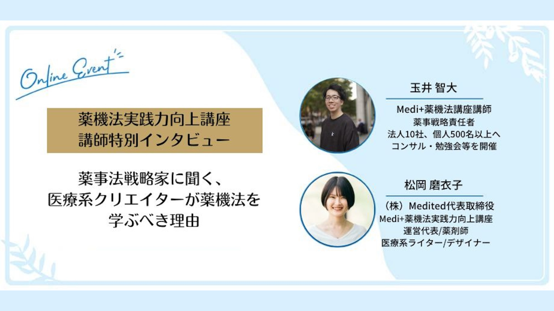 Medi+薬機法実践力向上講座リリース!薬事法戦略家に聞く、医療系クリエイターが薬機法を学ぶべき理由